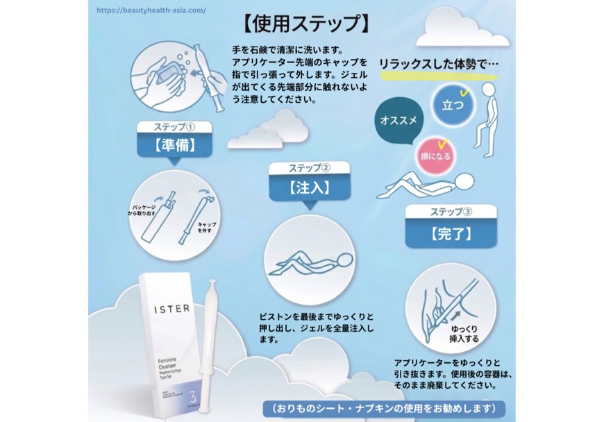 ISTERはみずみずしいテクスチャーのため、注入後、不要な汚れや残血を包み込みながら、余分なジェルが自然なプロセスとしてゆっくり排出されることがあります。